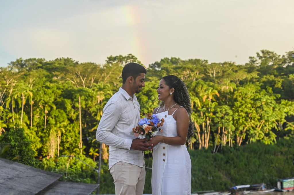 Manoel Mendes, de 23 anos, estava acompanhado da esposa Gabrielle Souza, de 22. Eles se conheceram durante a pandemia de covid-19, na zona rural do município. “Antes a gente não frequentava nenhuma igreja. Faz um ano que estamos na religião, pensamos juntos e decidimos nos casar”, contou o homem.