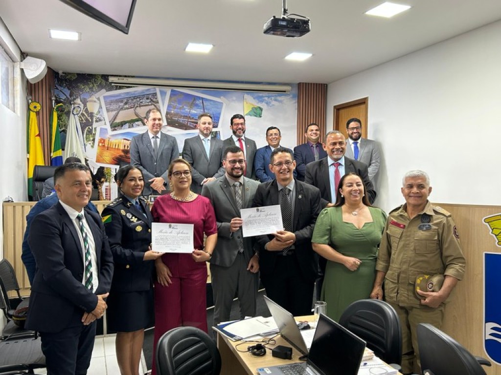 A Câmara Municipal de Rio Branco realizou na manhã de terça-feira, 28, um Ato Solene para a entrega de Moção de Aplauso ao primeiro sargento Edgley Silva de Araújo e à Capelania da Polícia Militar do Estado do Acre, em reconhecimento aos relevantes serviços prestados à corporação e à sociedade acreana. A homenagem foi proposta pelo vereador Matheus Paiva e contou com a presença de autoridades militares, parlamentares e convidados.
