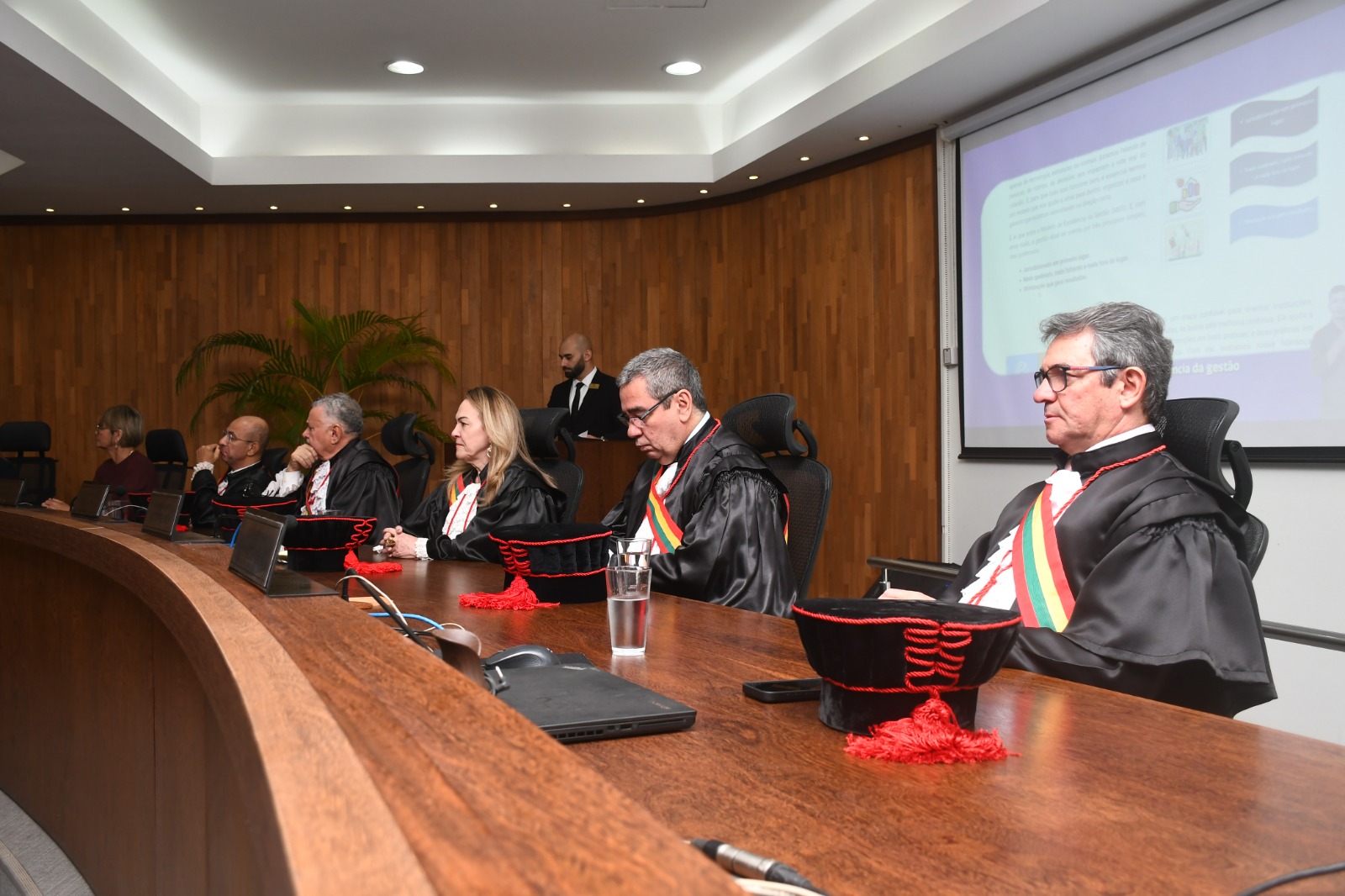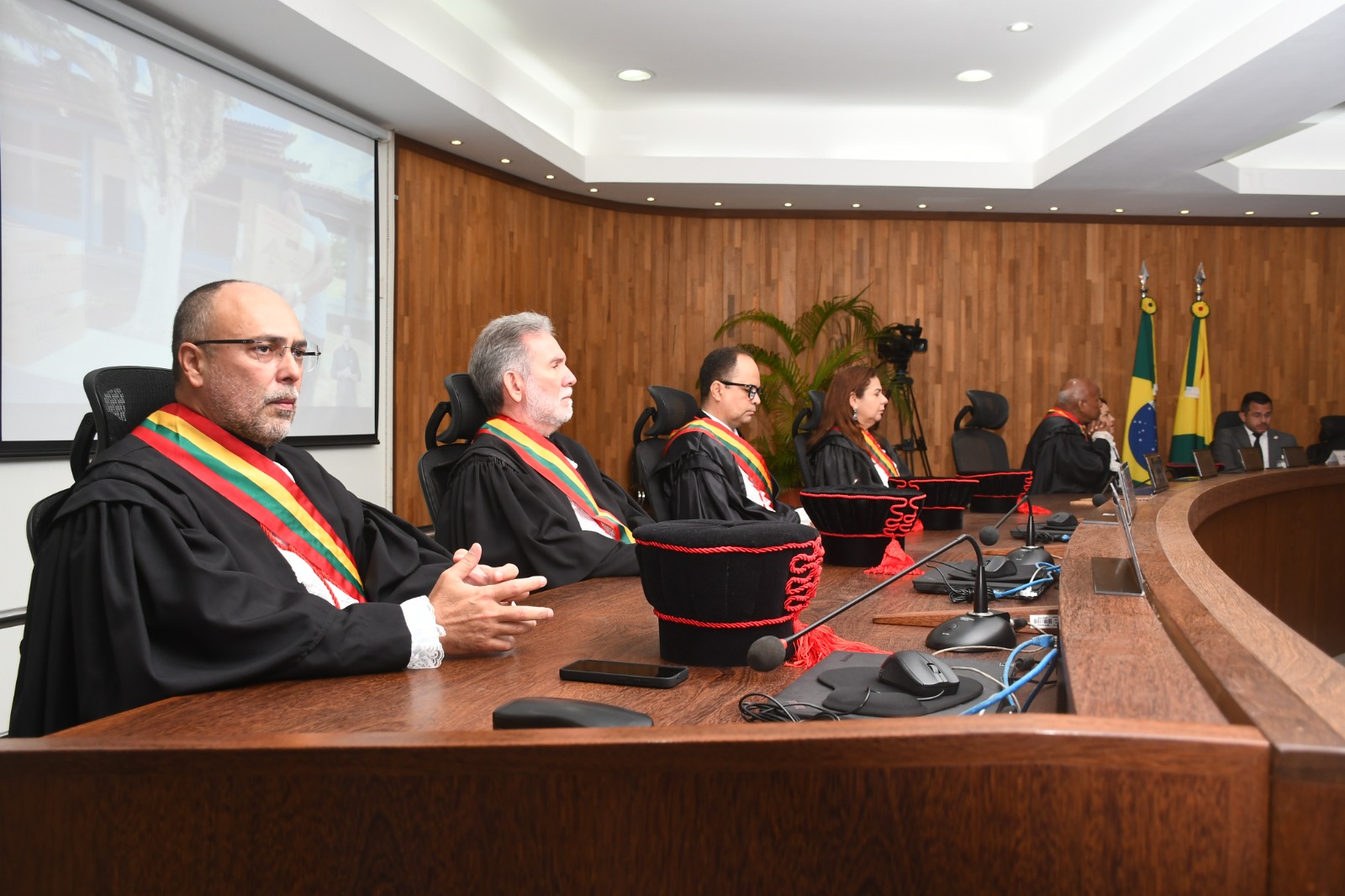 Além disso estavam presentes as desembargadoras Regina Ferrari (vice-presidente do TJAC) e Waldirene Cordeiro, assim como, os desembargadores: Samoel Evangelista, Roberto Barros, Francisco Djalma, Júnior Alberto, Elcio Mendes, Luis Camolez, Nonato Maia (corregedor-geral da Justiça) e Lois Arruda. A desembargadora Denise Bonfim justificou sua ausência.