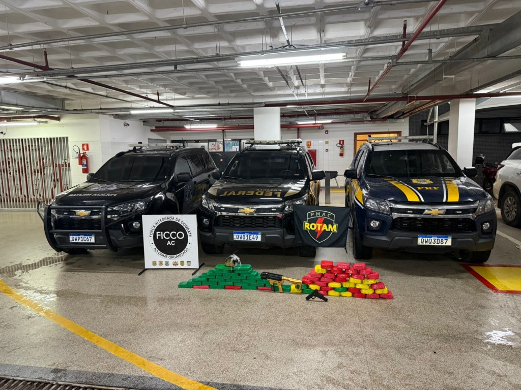 Na tarde desta quarta-feira (10/12), operação conjunta realizada pela Força Integrada de Combate ao Crime Organizado no Acre (FICCO/AC) e equipes da ROTAM e BOPE da Polícia Militar do Acre (PM/AC) e da Polícia Rodoviária Federal (PRF) resultou na apreensão de aproximadamente 70 kg de pasta base de cocaína, 250 gramas de skunk e duas armas de fogo de calibre restrito (uma pistola e uma submetralhadora impressa em 3D, ambas no calibre 9 mm).